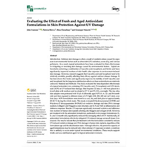 Ivarsson J, et al. Evaluating the Effect of Fresh and Aged Antioxidant Formulations in Skin Protection Against UV Damage. Cosmetics. 2025; 12(4):166. https://doi.org/10.3390/cosmetics12040166
