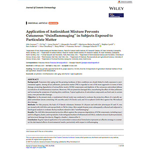 Ferrara F, Yan X, Pecorelli A, et al. "Combined exposure to UV and PM affect skin oxinflammatory responses and it is prevented by antioxidant mix topical application: Evidences from clinical study." J Cosmet Dermatol. 2024; 00: 1-13. doi:10.1111/jocd.16321